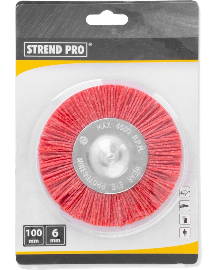 Okružná kefa Strend Pro by nemala chýbať vo výbave profesionálnych remeselníkov, ale aj domácich kutilov. Priemer kotúča je 100 mm s typom upnutia M14. Drôt je vyrobený z ocele s hrúbkou 1,4 mm. typ kotúča je vlnitý. Maximálne povolené otáčky sú 4 500 rpm. Používa sa na odstraňovanie hrdze, korózie, farby a na očistenie povrchov.
