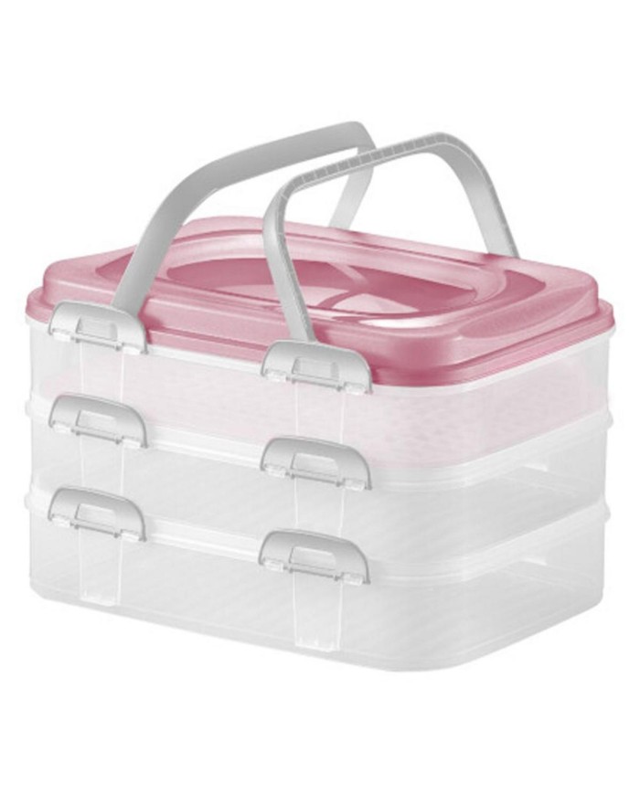 plastová dóza/box piknik s rozmermi 28x38 cm, výška 24 cm, 3-poschodová s úchytmi
