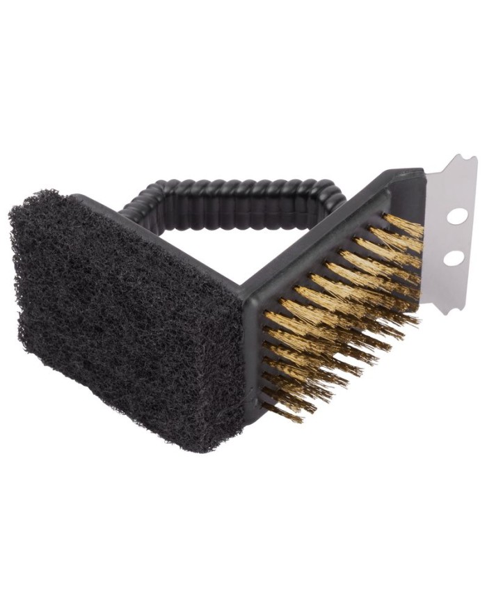 Malá ručná kefa je praktickým prostriedkom pre odstránenie nečistôt z grilu. Má trojuholníkový tvar, pričom každá strana slúži pre iné účely. Jedna strana rúčky slúži na uchopenie kefy. Pre odstránenie najhrubšej špiny sa odporúča použiť kovovú škrabku. Následne pre dodatočné odstránenie jemnejšej špiny a nečistôt použite druhú stranu trojuholníkovej kefy s mosadznými štetami. Mosadzné štetiny sú šetrné k povrchu grilovacieho roštu. Po očistení grilu od všetkých nečistôt použite tretiu stranu, na ktorej sa nachádza hubka. Pomocou hubky je možné kvalitne vyleštiť povrch čisteného grilovacieho roštu, čím zabezpečíte maximálnu čistotu.