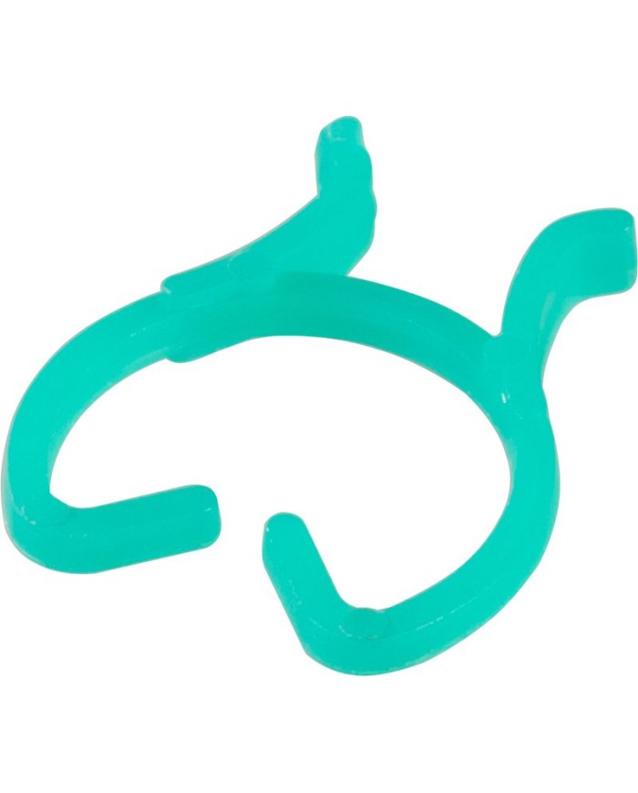 Spona je vyrobená z odolného plastového materiálu s pružnou štruktúrou, ktorá sa ľahko nasadzuje aj sníma bez použitia nástrojov. Charakteristický tvar s dvoma zachytávacími háčikmi zabezpečuje stabilné uchytenie na tyčiach aj lankách rôznych priemerov. Flexibilný materiál dovoľuje rastline prirodzený rast a zabraňuje zariezavaniu do stonky, čo je kľúčové najmä pri jemnejších rastlinách ako sú paradajky, uhorky, paprika či okrasné popínavé rastliny.