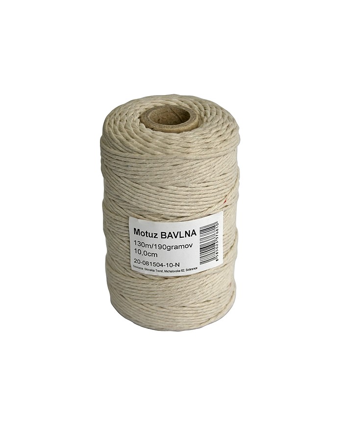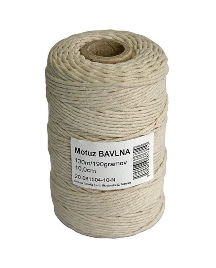Motuz Cotton by nemal chýbať vo vašej domácnosti. Jeho dĺžka je 130 m a je vyrobený z bavlny. Je vhodný tiež na zdobenie a tvorenie prírodných dekorácii.
