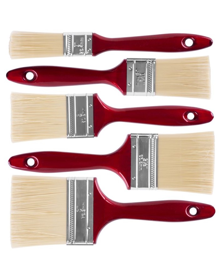 5 dielna sada štetcov Strend Pro je neoddeliteľnou súčasťou výbave každého maliara. Pozostáva z 5 štetcov so šírkou 1", 1 1/2", 2", 2 1/2" a 3". Držadlo štetca je červenej farby a je vyrobené z dreva s možnosťou zavesenia.