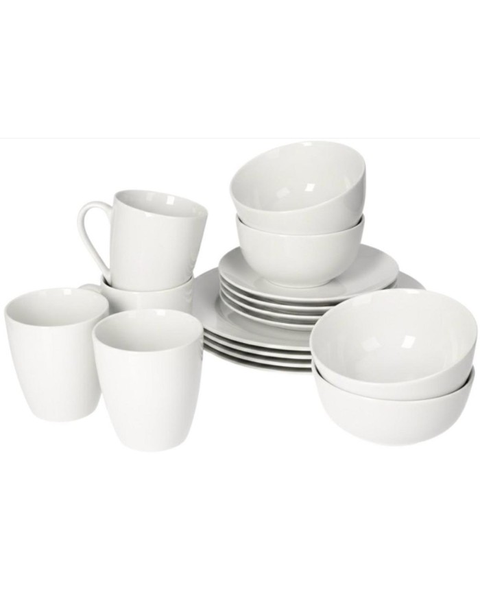tanierová sada, 16 dielna , materiál porcelán, farba biela, sada obsahuje 4x šálka s objemom 360 ml, 4x miska s priemerom 15,5 cm, 4x plytký tanier s priemerom 27 cm, 4x dezertný tanier s priemerom 19 cm