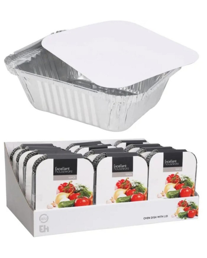 Miska / podnos hranatá grilovacia/na pečenie s vekom ALU 12x14,5x5 cm, sada 10 ks