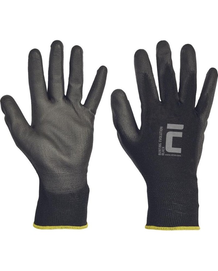 Pletené bezešvé polyesterové rukavice, s tenkou vrstvou polyuretanu v dlani a na prstech a pružnou manžetou. Balenie obsahuje 12 párov rukavíc.