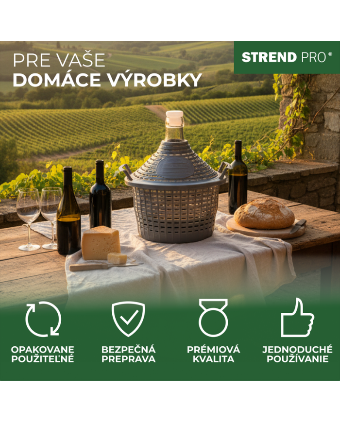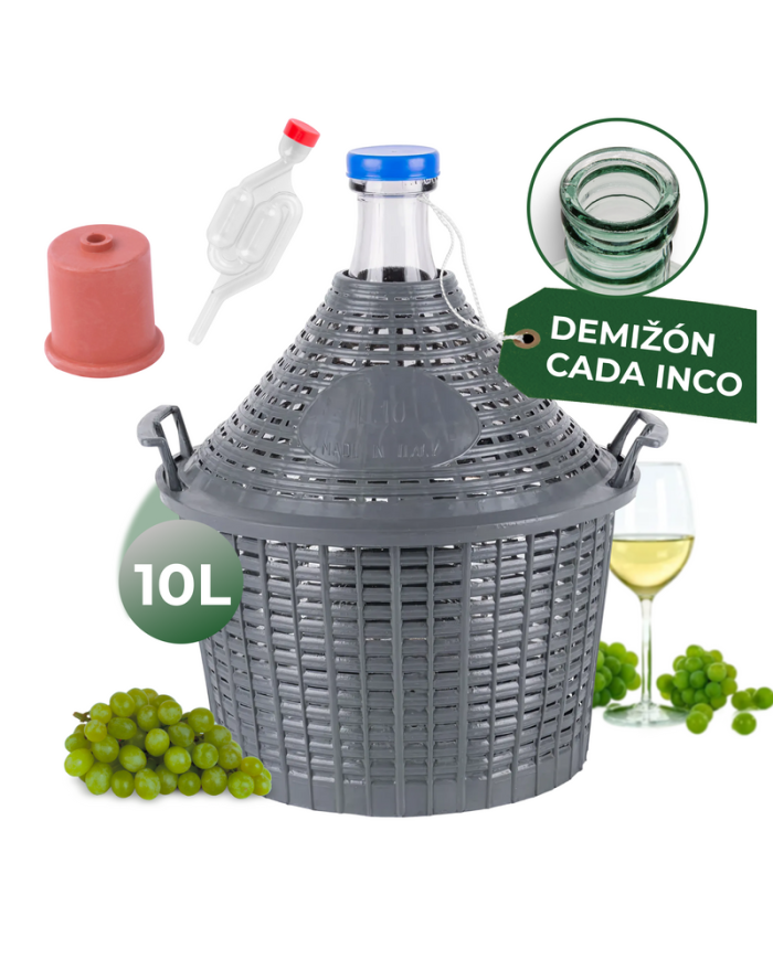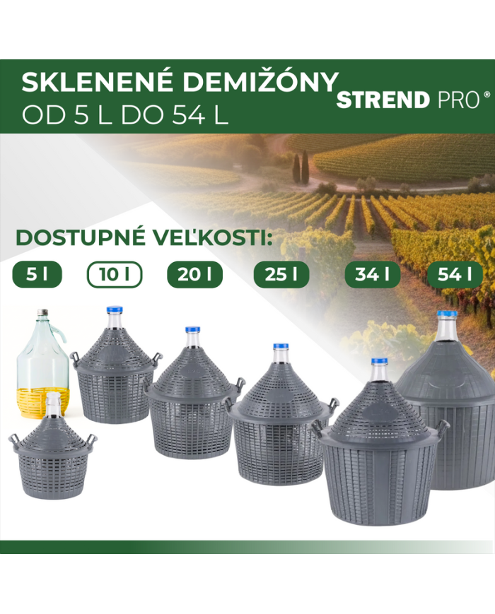 Demižón Strend Pro Cada Inco, 10 lit. sklenený, na víno a pálenku, plastový kryt