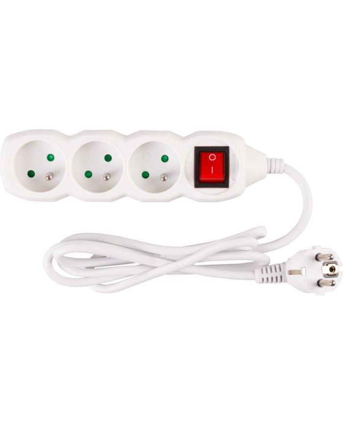 Kábel DG-F803BK L-1.5 m, predlžovací, biely, 3x zásuvka + vypínač, new edition