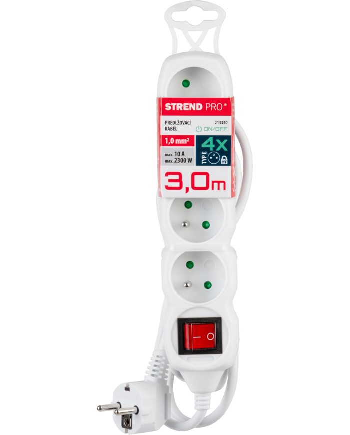 Praktický predlžovací kábel DG-F804B v bielej farbe zabezpečí prívod elektrickej energie až do dĺžky 3 metre. Svoje využitie nájde v kanceláriách, ale aj v domácnostiach. Vďaka 4 zásuvkám umožňuje pripojenie viacero zariadení naraz. Kábel disponuje praktickým ON/OFF prepínačom. Vypnutím hlavného vypínača prerušíte prívod elektrickej energie ku všetkým zapojeným spotrebičom.
