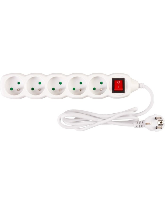 Kábel DG-F805BK L-1.5 m, predlžovací, biely, 5x zásuvka + vypínač, new edition