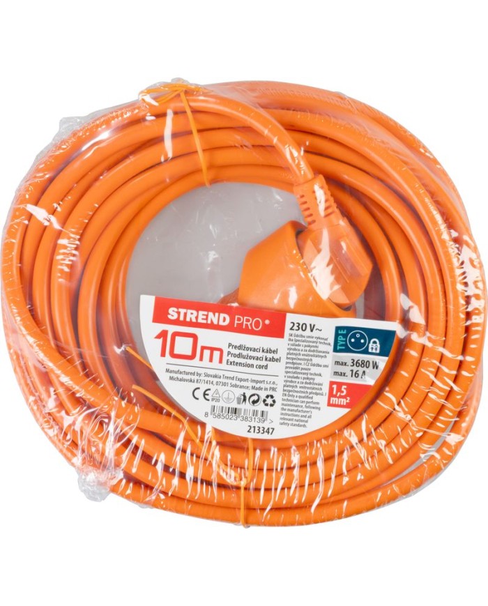 Praktický predlžovací kábel DG-YFB01 v oranžovej farbe zabezpečí prívod elektrickej energie až do dĺžky 10 metrov. Kábel je vhodný na viacero účelov, použiteľný všade, kde bežný kábel nie je dostatočne dlhý. Maximálna záťaž je 3680 W/16A. Priemer medeného kábla je 1,5 mm.