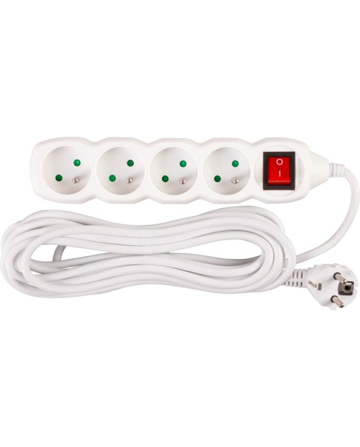 Praktický predlžovací kábel DG-F804B v bielej farbe zabezpečí prívod elektrickej energie až do dĺžky 5 metrov. Svoje využitie nájde v kanceláriách, ale aj v domácnostiach. Vďaka 4 zásuvkám umožňuje pripojenie viacero zariadení naraz. Kábel disponuje praktickým ON/OFF prepínačom. Vypnutím hlavného vypínača prerušíte prívod elektrickej energie ku všetkým zapojeným spotrebičom.