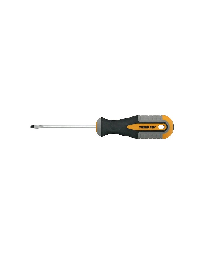 Skrutkovač Strend Pro by nemal chýbať vo vašej dielni. Je to plochý skrutkovač s rozmerom 3x75 mm. Je ideálny na uťahovanie a povoľovanie skrutiek s plochou drážkou. Rukoväť je vyrobená z plastu a zabezpečuje pohodlné uchopenie s možnosťou zavesenia.