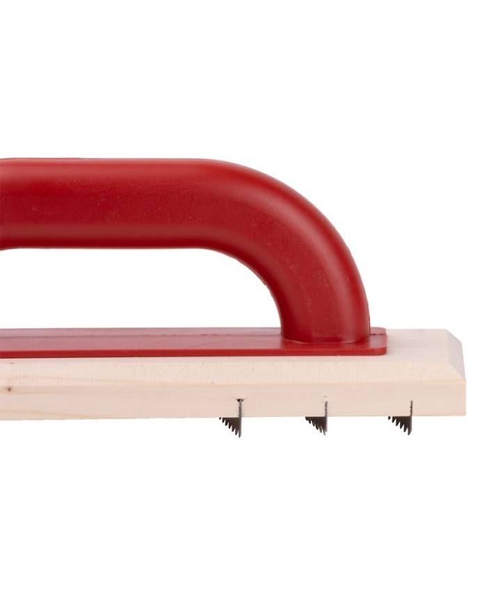 škrabák malý, s drevený s hrotmi, rukoväť plastová, rozmer 26x8,5 cm, profi, použitie: odstránenie nerovnosti z porobetónu Ytong,