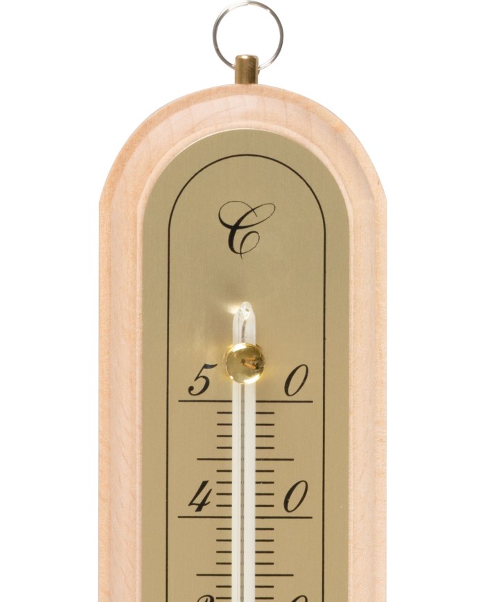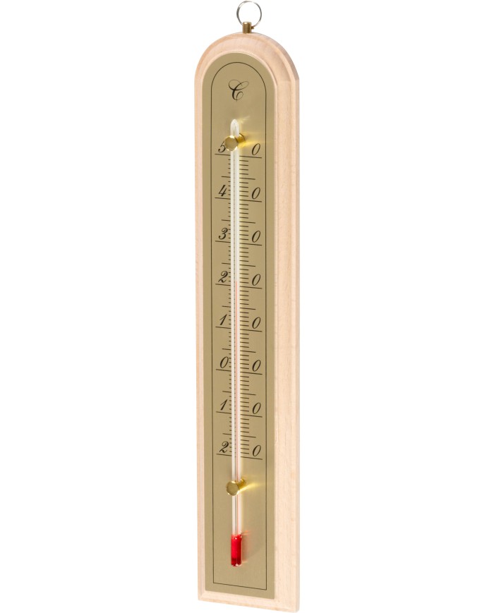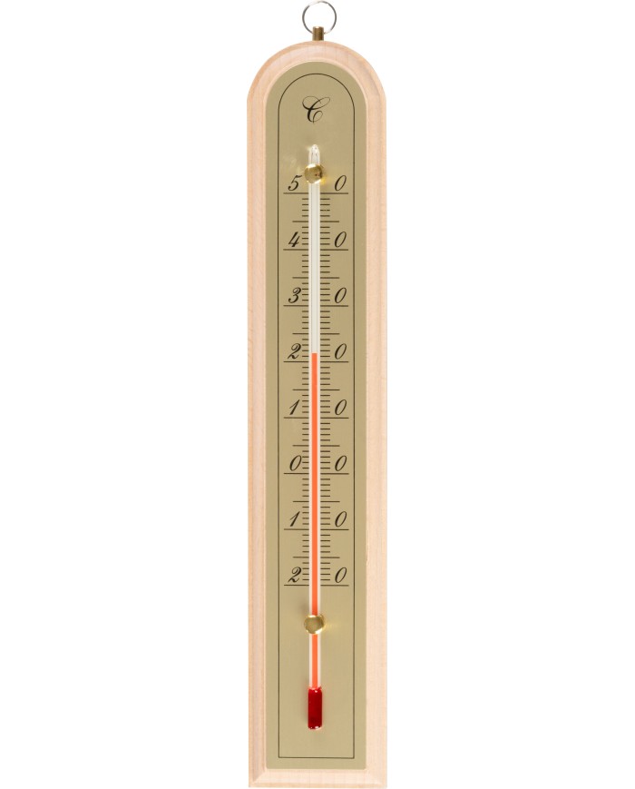 Vnútorný teplomer s dreveným podkladom, meria teplotu v rozsahu od 50°C do -20°C