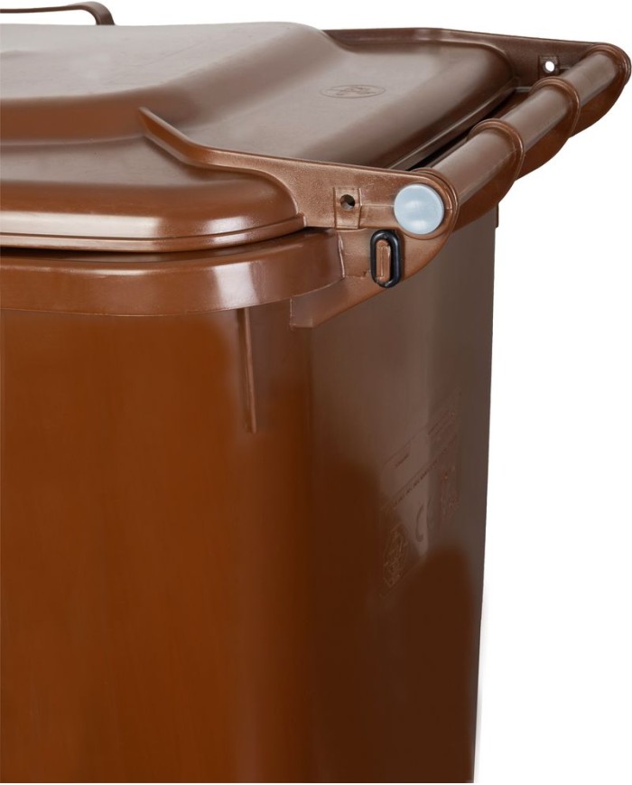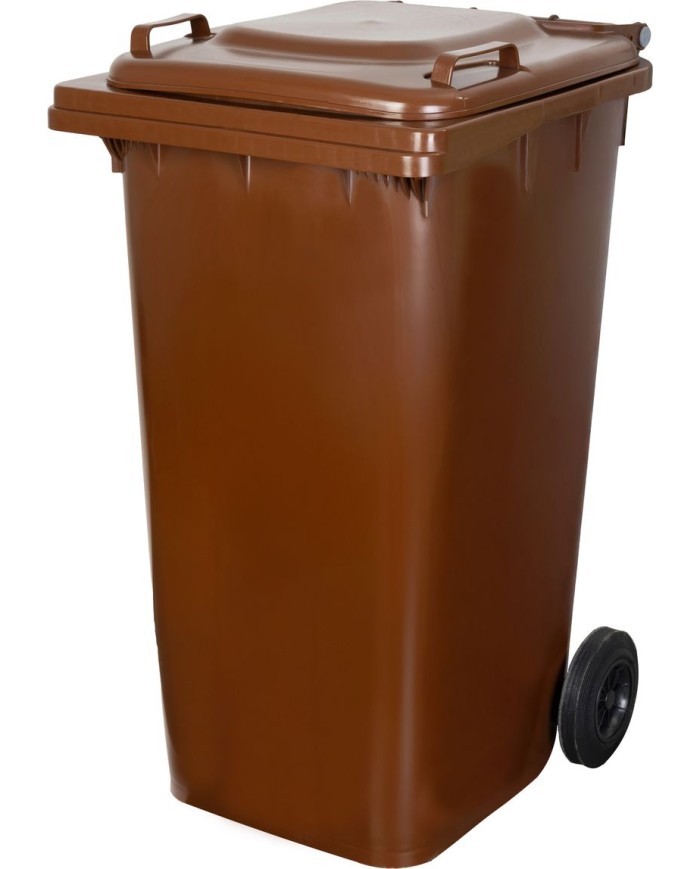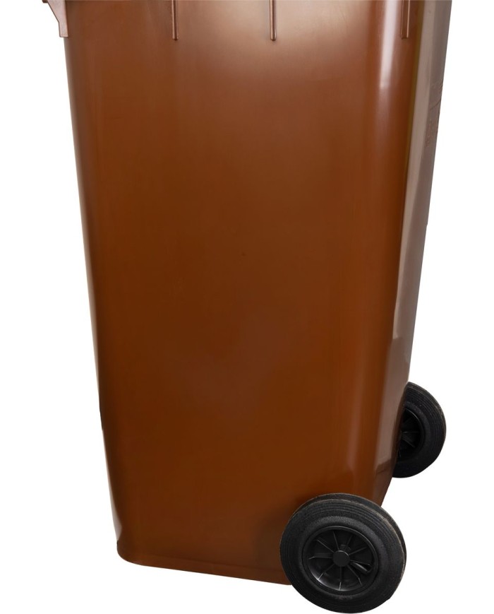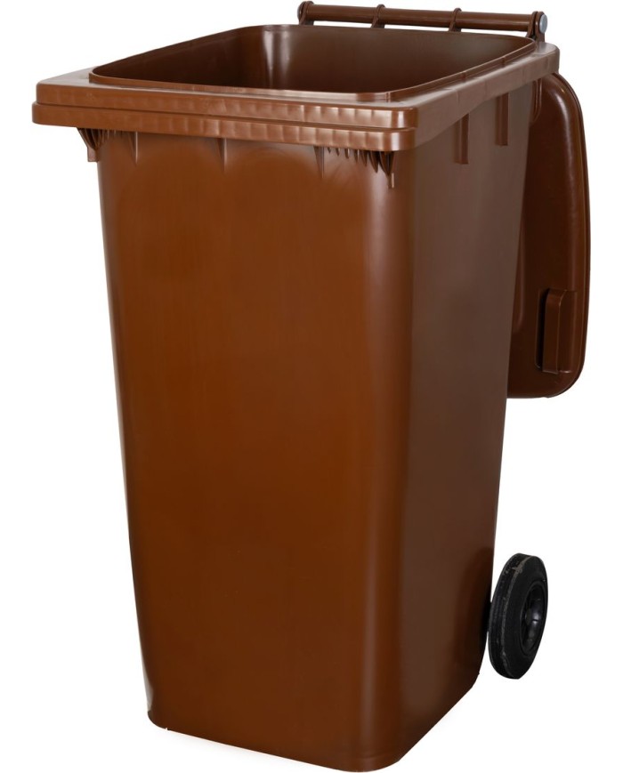Nádoba na odpad ICS GB4 s objemom 240 litrov v hnedej farbe je robustná a praktická popolnica určená na zber a skladovanie komunálneho odpadu. Vyrobená z odolného plastu, ktorý je rezistentný voči poveternostným vplyvom, UV žiareniu a mechanickému poškodeniu, čo zabezpečuje jej dlhú životnosť.