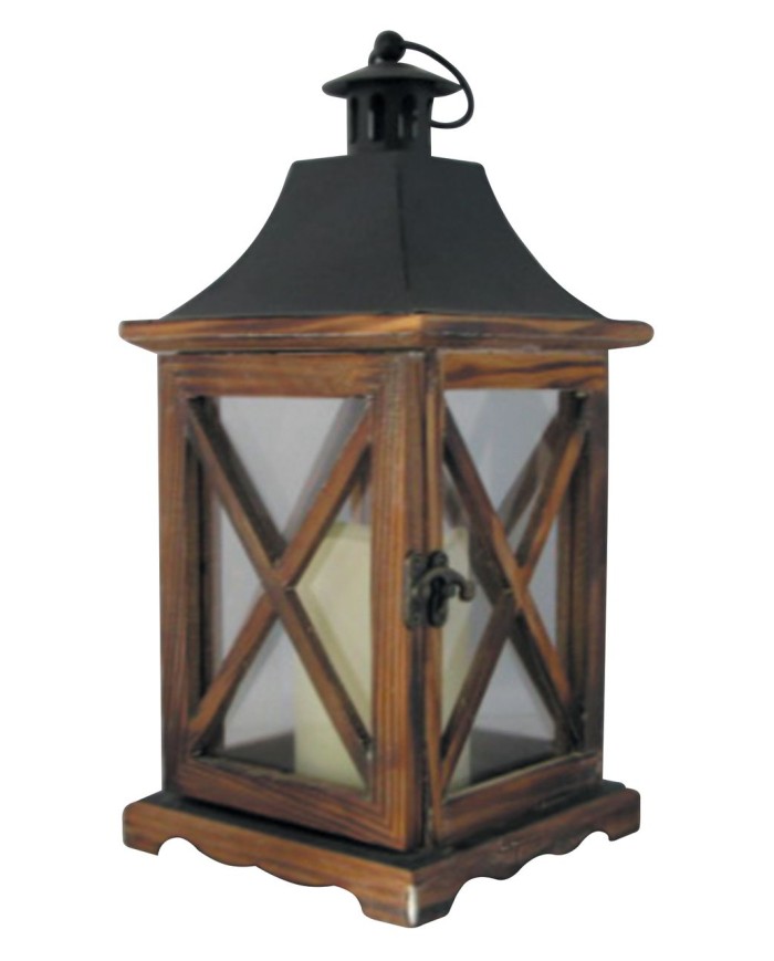 Drevený lampáš MagicHome v štýle vintage skvele dotvorí atmosféru u Vás doma. Obsahuje sviečku. Len na vnútorné použitie. Funkcia: plápolanie plameňa. Napájanie: 3xAAA, batérie sú sučasťou balenia. Výška lampášu je 35 cm.