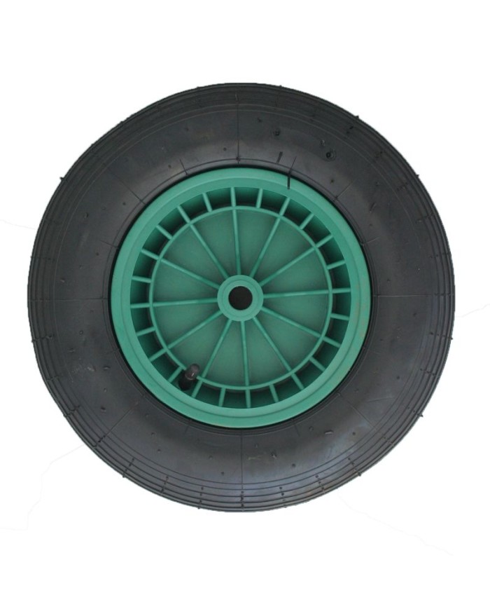 Priemer celého kolesa aj s gumou je 38 cm, šírka kolesa v mieste osky je 8 cm, šírka kolesa v mieste gumy je 9 cm. Vnútorný stred tvorí jeden kus plastového ihlového ložiska. Je vyrobený z PE materiálu, kovového kotúča a nylonového rámu.