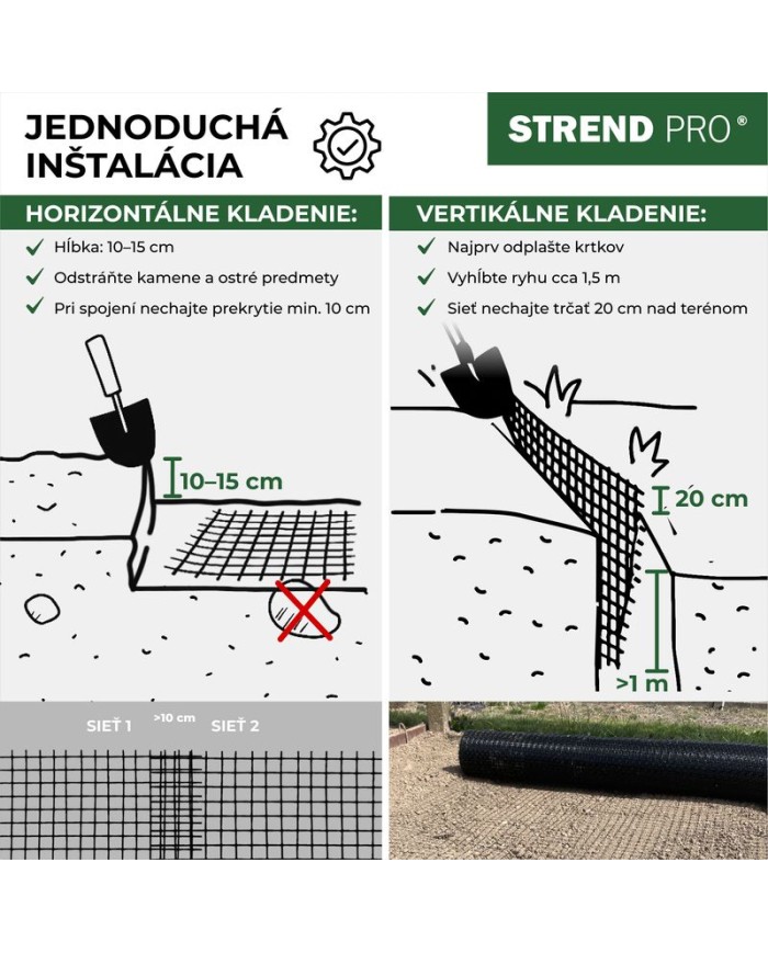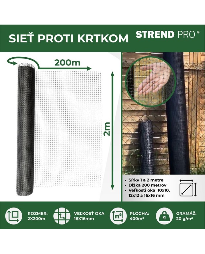 Sieť proti krtom GrassGuard, oko 16x16 mm, 1 m, L-200 m, do zeme, proti krtkom