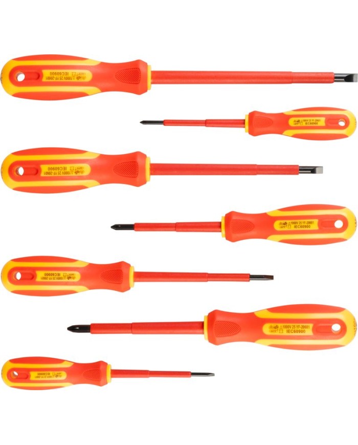 Sada skrutkovačov by nemala chýbať vo vašej dielni. Skrutkovače sú vyrobené z chrómvanádu a disponujú magnetom. 7 dielna, VDE, Cr-V