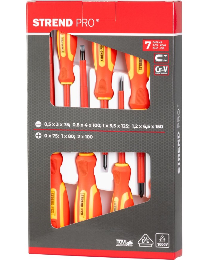 Sada skrutkovačov Strend Pro YF20719, VDE 7 dielna, ploché + Phillips, elektrikárske, 1000V