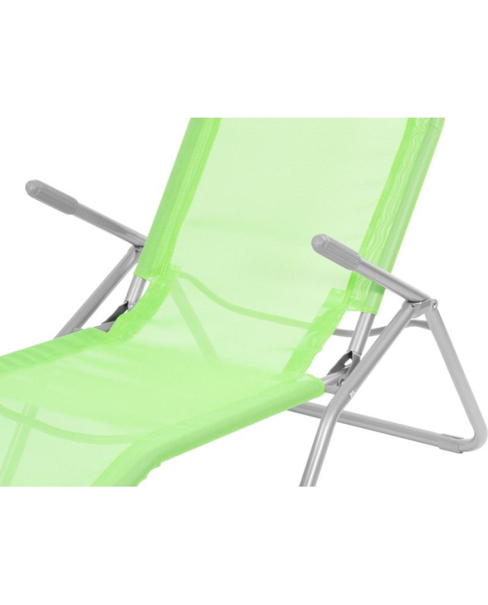Zelené záhradné lehátko je určené na vonkajšie sedenie alebo ležanie. Konštrukcia je vyrobená z kovu, časť na ležanie je pokrytá pevnou sieťovinou. Lehátko je možné nastaviť do dvoch polôh, pre sedenie alebo ležanie. Lehátko je možné zložiť, čím nezaberá veľa priestoru a je praktické na prenos a uskladnenie. Lehátko nie je určené na komerčné účely. Rozmery rozloženého lehátka sú 140 x 60 x 96 cm.