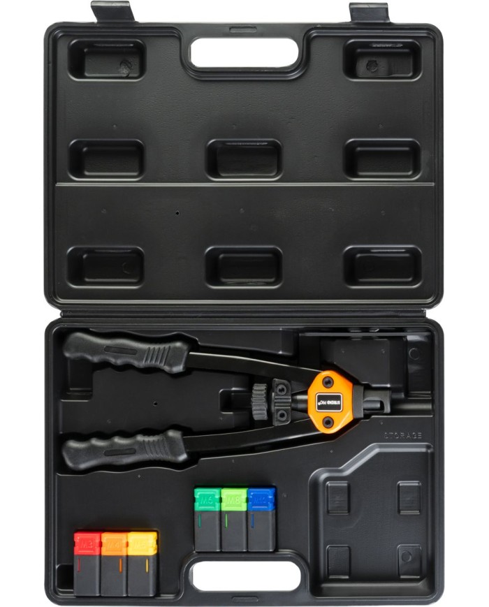 Nitovacie kliešte sú určené na spájanie materiálov pomocou nitovacích matíc. Použitie nitov: hliník, oceľ a nerez. Kliešte sú uložené v praktickom kufríku spolu so 6x nitovacími koncovkami M3, M4, M5 M6, M8 a M10. Dĺžka: 330 mm.