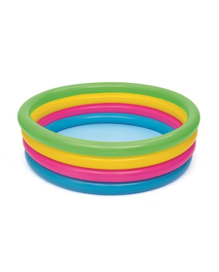 Farebná 4-prstencová nafukovacia konštrukcia je nie len pútavá pre deti, ale zároveň ponúka stabilitu, odolnosť a trvácnosť. Výhodou je jej jednoduché zostavenie aj odloženie. Stačí nafúknuť 4 prstence vzduchom a Váš bazén je pripravený na napustenie vodou. Špliechanie na slnku nikdy nebolo zábavnejšie ako s dúhovým nafukovacím bazénom Bestway!