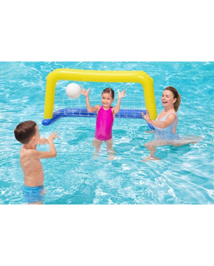 Deti sa môžu naučiť hrať vodné pólo ako profesionáli s hernou sadou Bestway® Water Pool Swimming Pool Game! Zažijú veľa zábavy, keď sa budú snažiť hodiť loptu do nylonovej siete proti svojmu súperovi. Bránka je určená na použitie vo vode. Je vyrobená z odolného materiálu a jej montáž je veľmi rýchla a jednoduchá.