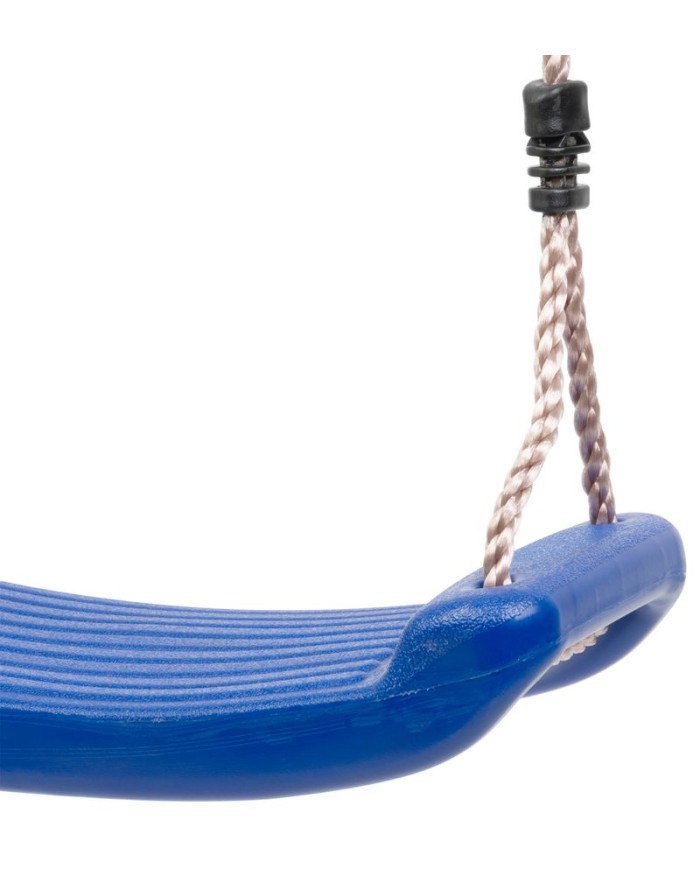 Detská modrá plastová hojdačka je praktická, ľahko umiestniteľná takmer kdekoľvek vo vašej záhrade. Hojdačka nemá opierku a nemá ani prednú ochranu pred pádom, preto je potrebné na dieťa dávať pocelý čas pozor. Nosnosť hojdačky je 90 kg a jej rozmery sú 40 x 16 x 1,2 cm. Na oboch stranách sedacej časti sú pripevnené laná dlhé 2 m, s priemerom 10 mm. Je potrebné ich poriadne uviazať na miesto, kde chcete hojdačku mať. Uistite sa, že je pripevnená správne, nie príliš vysoko a že nehrozí riziko poranenia.