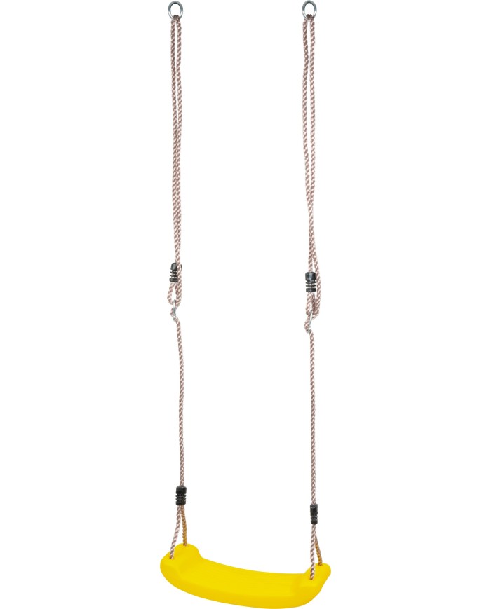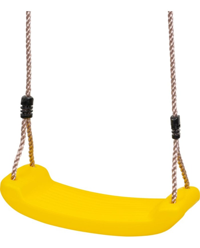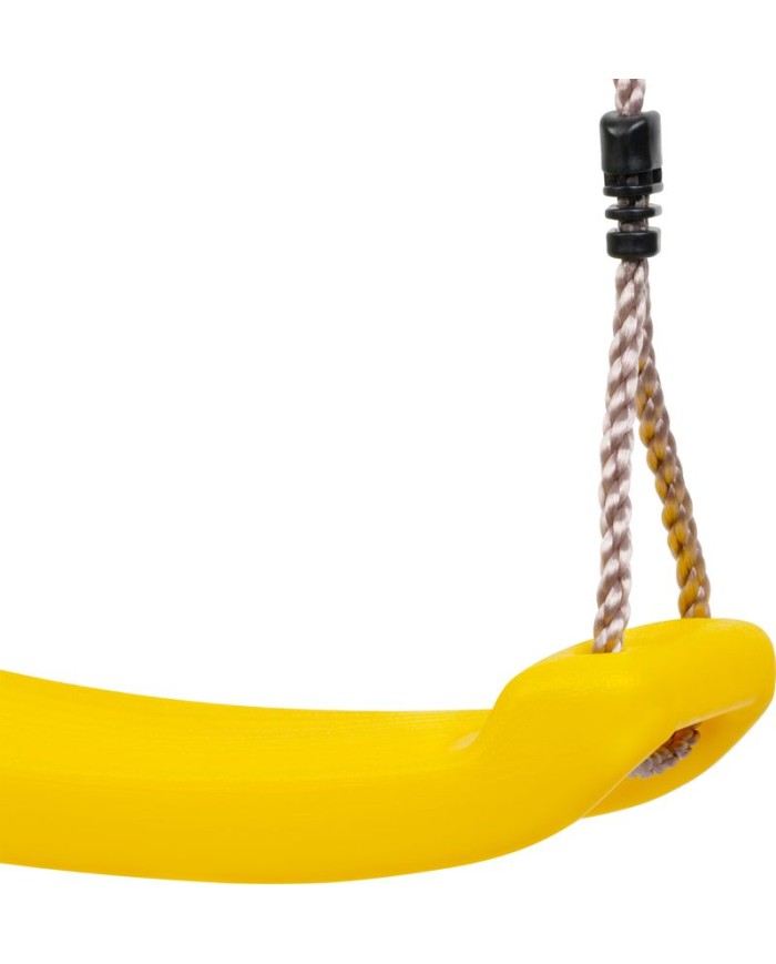 Detská žltá plastová hojdačka je praktická, ľahko umiestniteľná takmer kdekoľvek vo vašej záhrade. Hojdačka nemá opierku a nemá ani prednú ochranu pred pádom, preto je potrebné na dieťa dávať pocelý čas pozor. Nosnosť hojdačky je 90 kg a jej rozmery sú 40 x 16 x 1,2 cm. Na oboch stranách sedacej časti sú pripevnené laná dlhé 2 m, s priemerom 10 mm. Je potrebné ich poriadne uviazať na miesto, kde chcete hojdačku mať. Uistite sa, že je pripevnená správne, nie príliš vysoko a že nehrozí riziko poranenia.