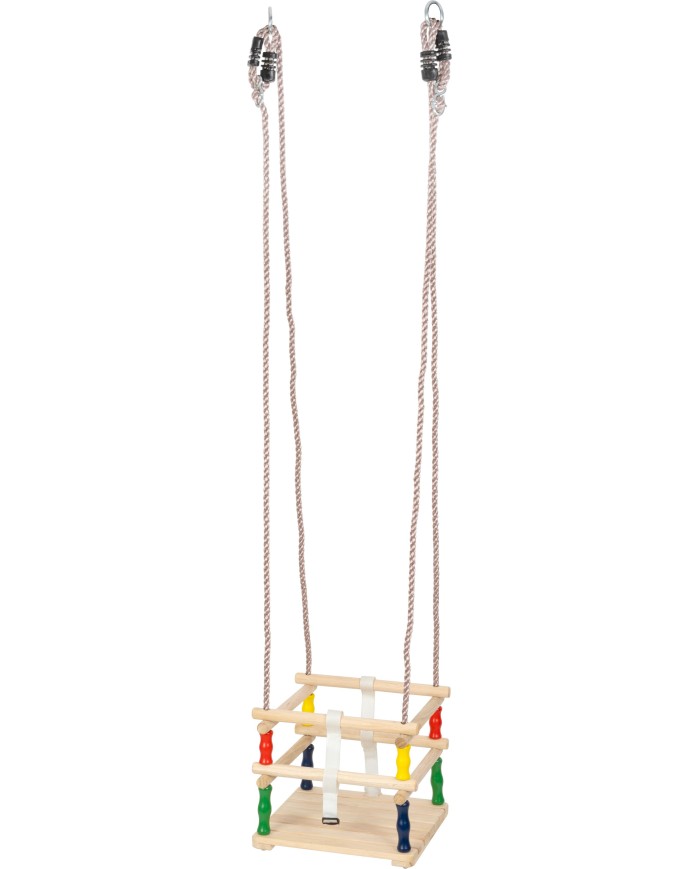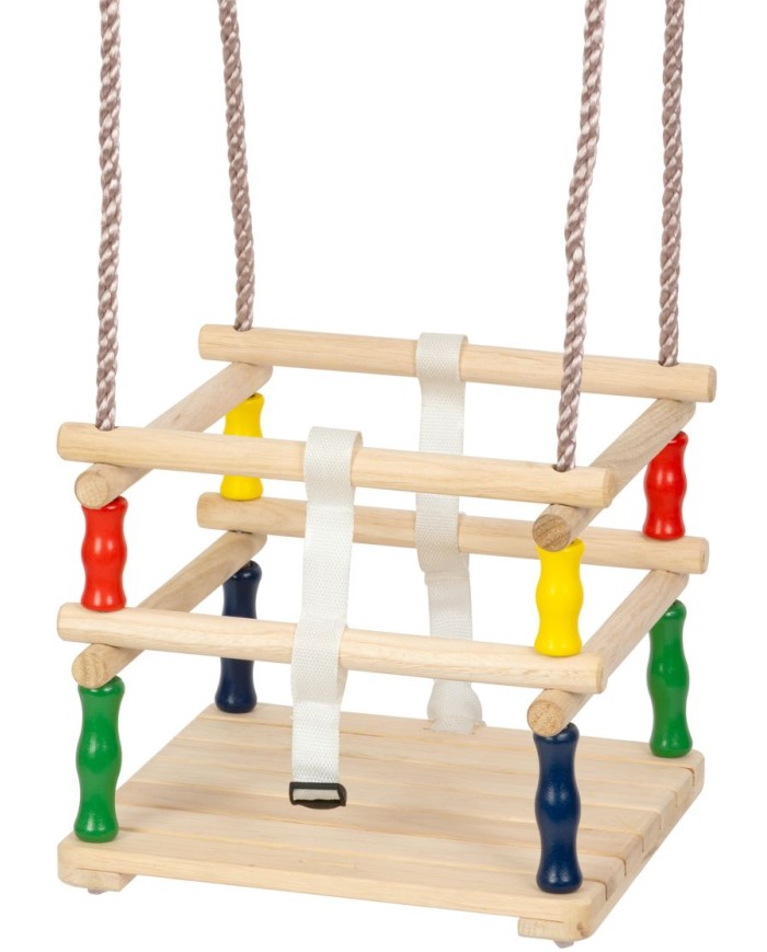 Detská drevená hojdačka poskytuje príjemnú zábavu pre deti. Celá konštrukcia je vyrobená z dreva a poskytuje nosnosť 60 kg. Z dôvodu hojdania menších detí je hojdačka vybavená vyvýšenou opierkou z každej strany, čím zabezpečuje ochranu pred vypadnutím. Rozmery sú 30 x 30 cm. Hojdačku je potrebné umiestniť zavesením kovových kruhov na predom navŕtané háky. Kruhy sa nachádajú na koncoch lán s priemerom 10 mm a dĺžkou 2 m. Dĺžku si viete podľa potreby manuálne nastaviť kedykoľvek.