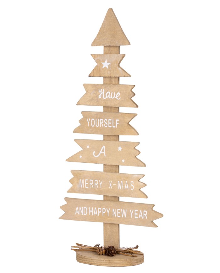 Dekorácia MagicHome Vianoce Woodeco, Strom s tabuľkami, bal. 2 ks, 40x17 cm