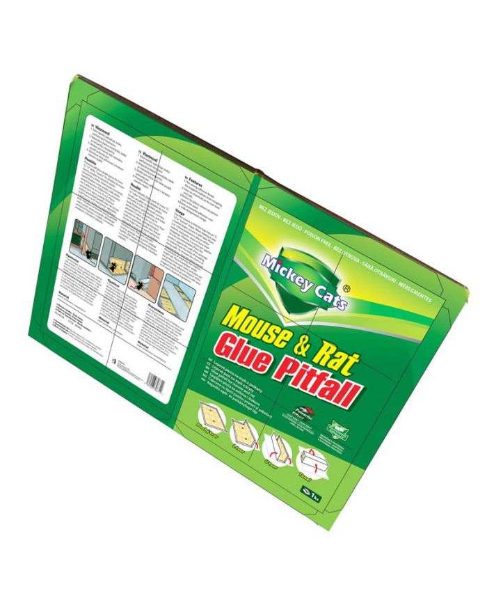 Silné lepidlo na lepovej pasci Mickey zabraňuje úniku zachytených hlodavcov. Lepová doska nepoužíva žiadne chemikálie, takže je netoxická a bezpečná. Možnosť zložiť do rôznych tvarov (U,L, plochý tvar a tunel). Rozmery: 22x17x1 cm.