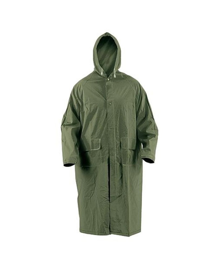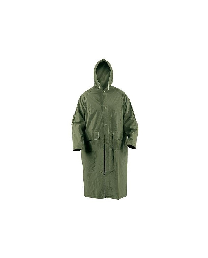 Zelený pršiplášť s kapucňou zo 100% polyesteru s trochou PVC.Do predných vreciek nenatečie voda vdaka krytiu légiámi.S vnútornou manžetou na gumu a ventiláciou na chrbte a pod pazuchami.Komfort pri nosení je zabezpečený zatavenými spojovacími švami.Odporúča sa iba ručne žehliť na max.30 °C. Zakazuje sa bieliť, sušiť v bubnovej sušičke,žehliť,chemicky čistiť. Norma EN ISO 13688.
