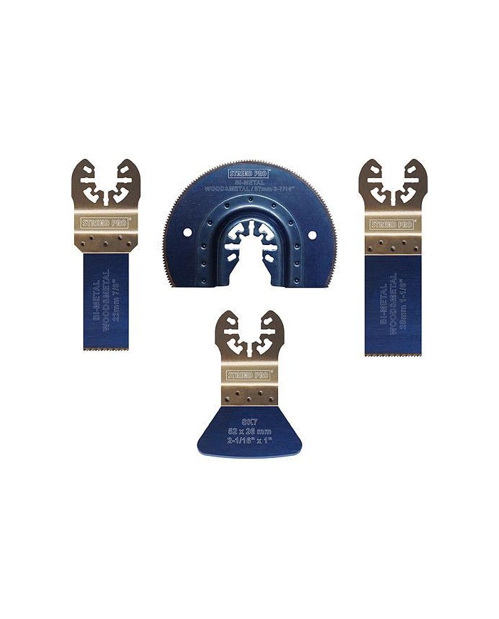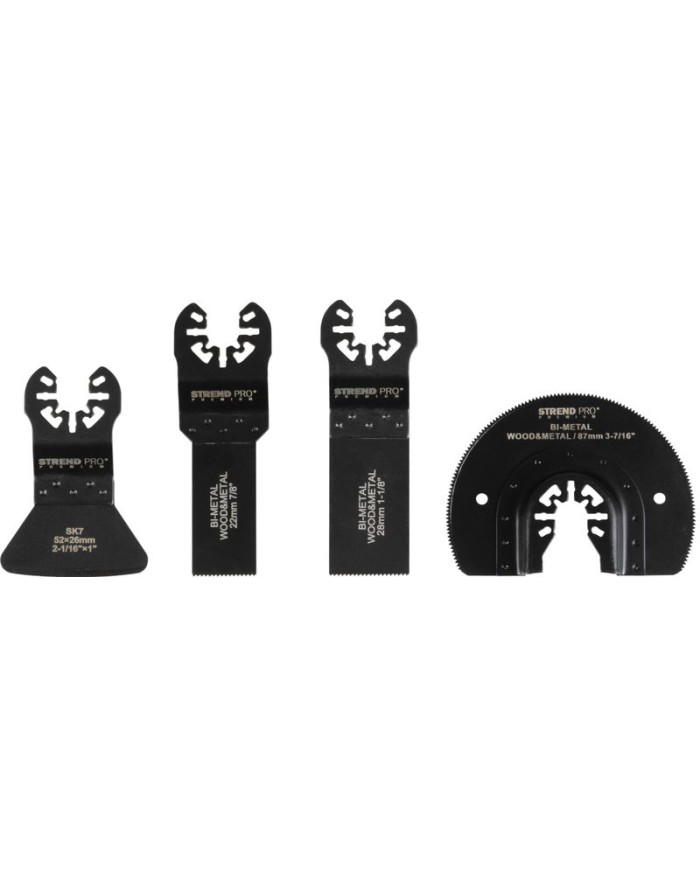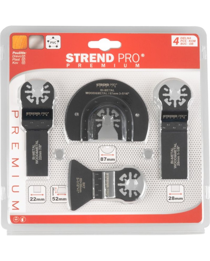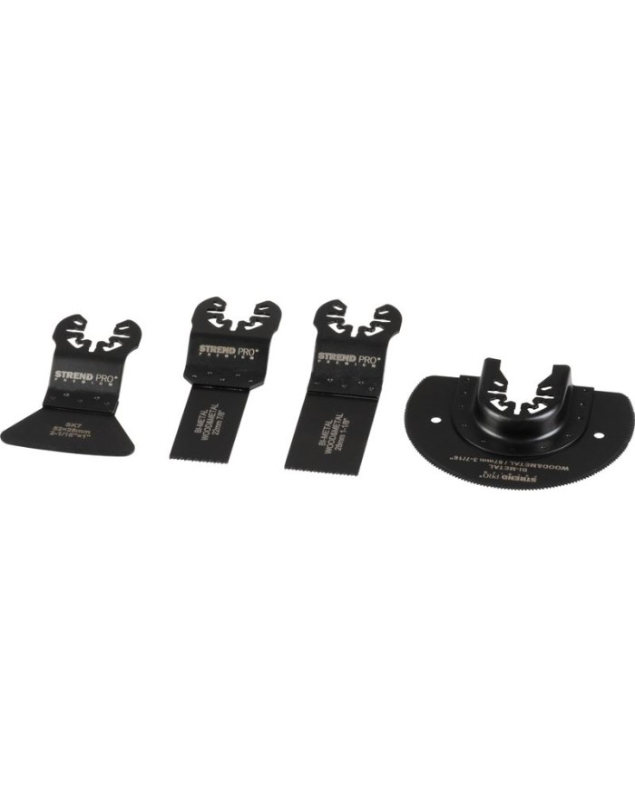 4 dielna sada nástrojov Strend Pro je vhodná pre domácich kutilov, ale aj pre profesionálnych remeselníkov. Používa sa na drevo, plast, oceľ, hliník a neželezné kovy. Je určená na multibrúsku. Pozostáva z pilových listov, polkruhu a škrabky.