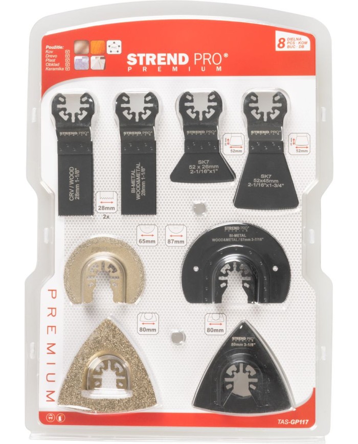 Sada nástrojov Strend Pro TAS-GP117 pílové listy, polkruhy a držiak do multibrúsky, 8-dielna