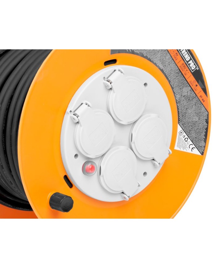 Kvalitný predlžovací kábel Strend Pro CR038 v oranžovom prevedení namotaný na bubne je dlhý 30 metrov. Efektívne rozšíri prívod elektriny do vzdialených miest. Na bubne má štyri zásuvky (230 V), takže môžete napájať viacero zariadení naraz. Svoje využitie nájde vo firmách aj záhradách.