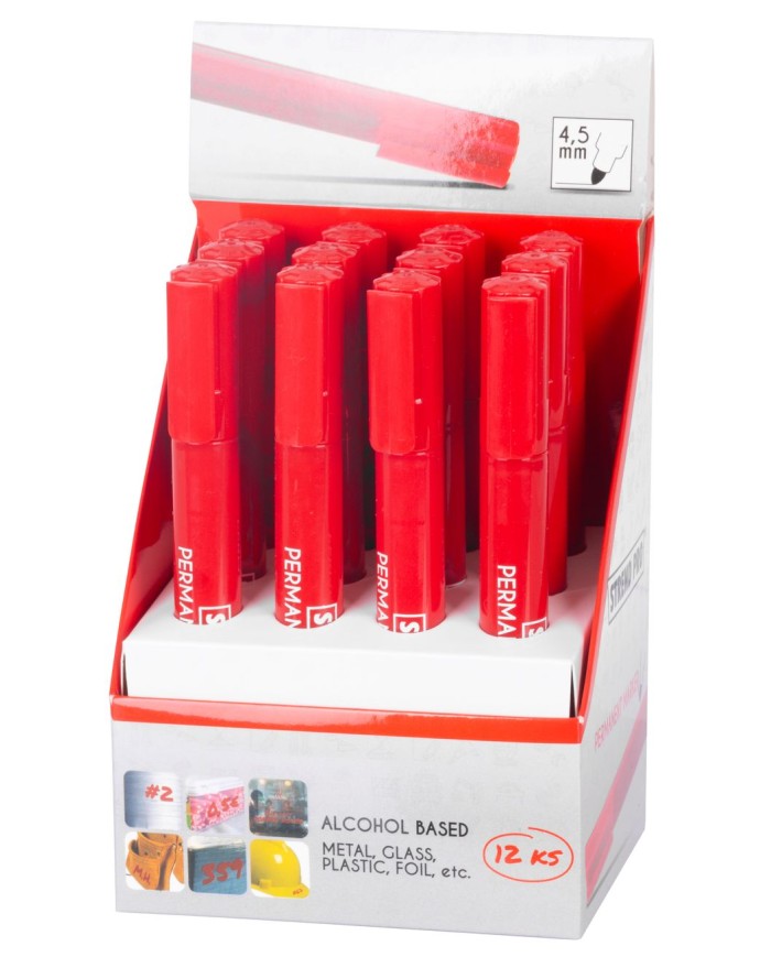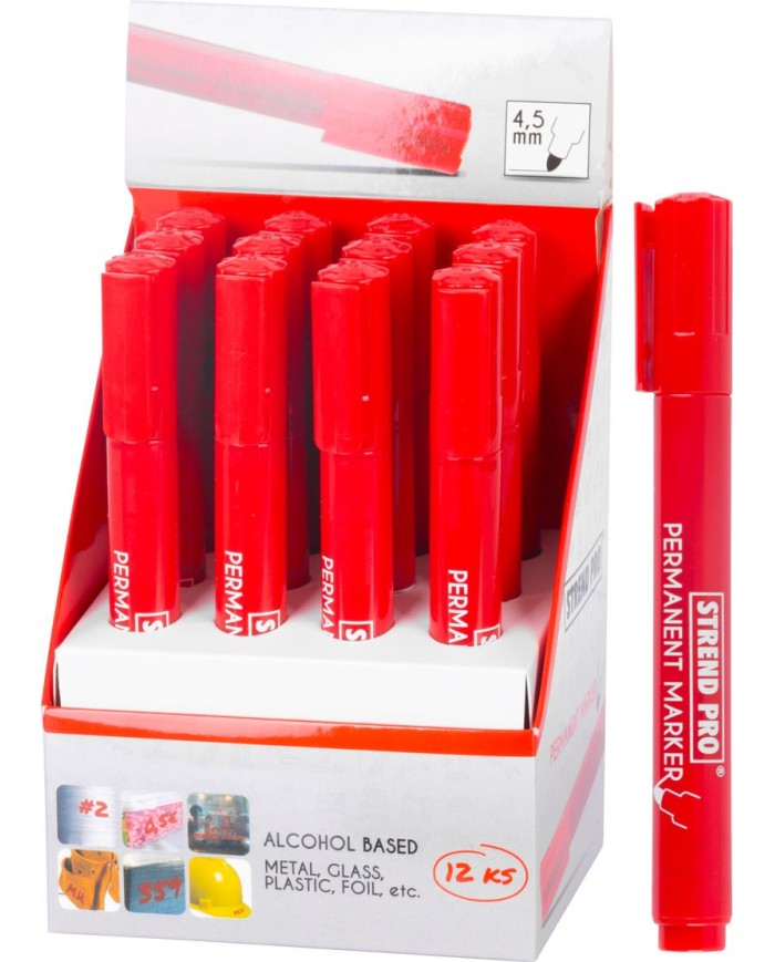 - Je vodeodolný a odolný proti oderu na takmer každom povrchu - Obsahuje permanentný inkust na alkoholovej báze bez prísady toluénu a xylénu • gulatý hrot • urcený na: sklo, plast, fóliu, kov, kamen, kartón. Uvedená cena je za 1 ks.