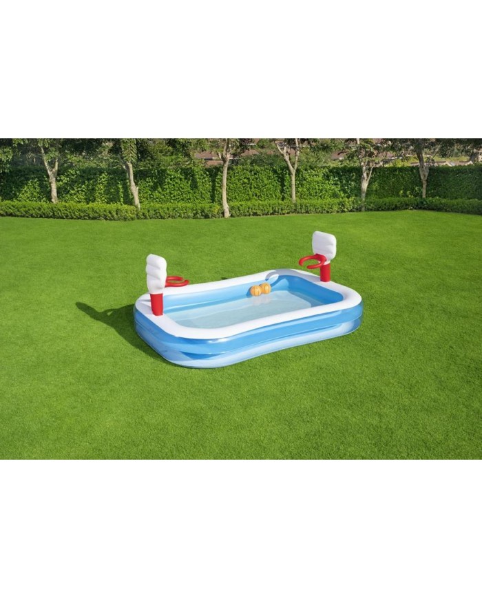 Nafukovací bazén Bestway® Basketball je určený hlavne pre malých basketbalistov vo veku 3 a viac rokov, ktorí môžu počas osvieženia vo vode súčasne strieľať na kôš. Zdvojnásobí sa špliechanie aj zábava! Bazén disponuje 2 obručami a košmi, a v balení nájdete taktiež 2 nafukovacie lopty.