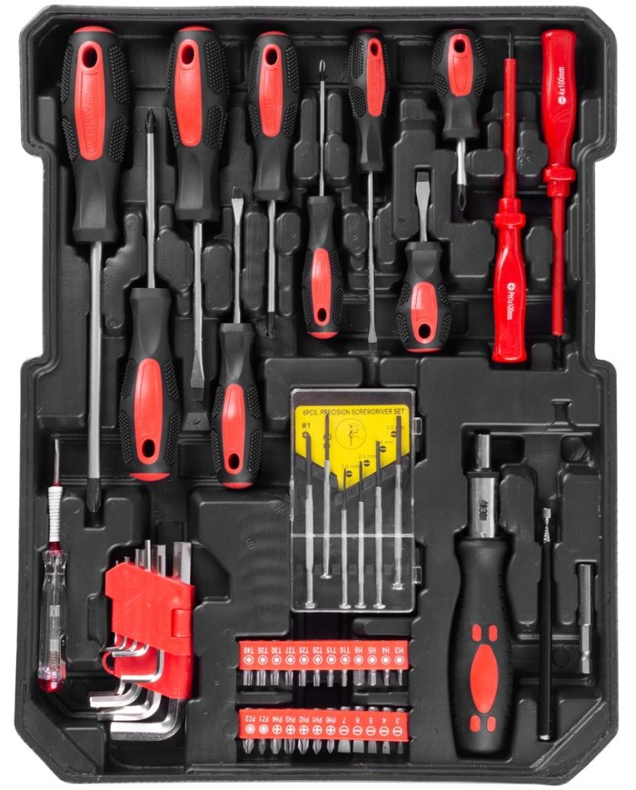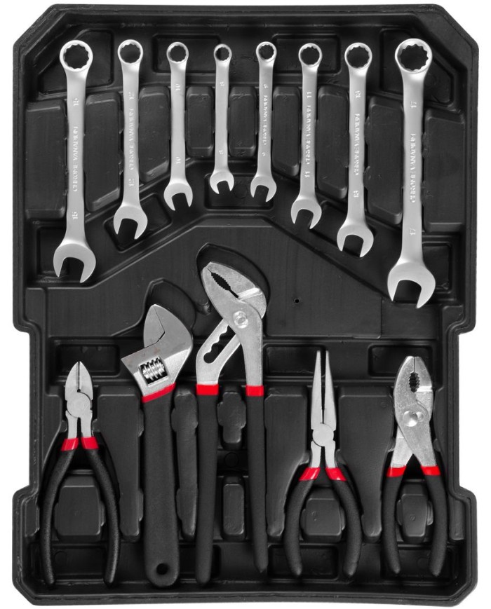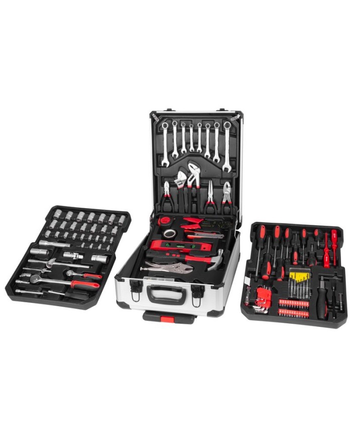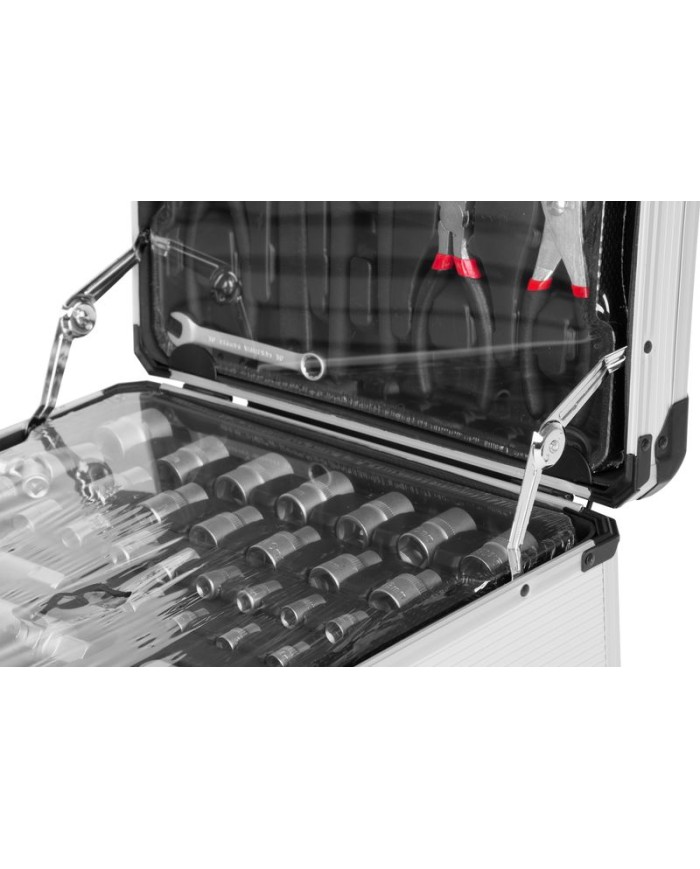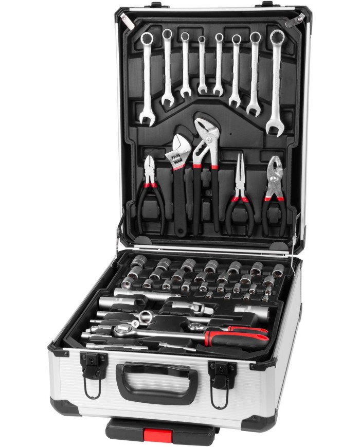 Nevyhnutnou súčasťou dielne je kvalitná 117-dielna sada náradia Strend Pro uložená v praktickom ALU kufri, v ktorom má každý diel svoje úložné miesto, preto nehrozí, že v ňom budete mať neporiadok. Obsahuje nasledujúce náradie: