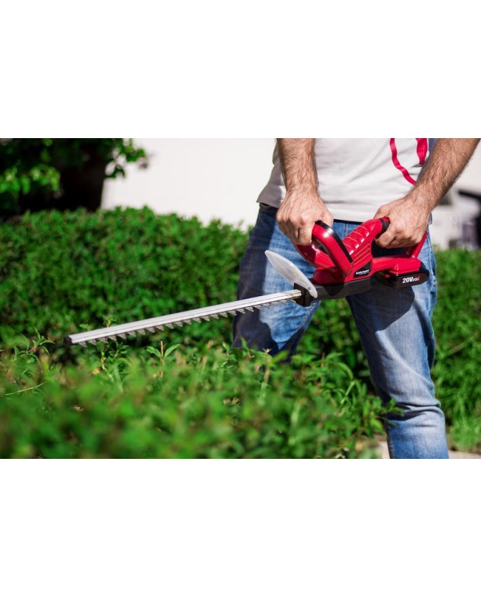 Akumulátorové nožnice Worcraft CHT-S20LiA sú určené výlučne na strihanie živých plotov, kríkov a krovín. Nožnice s lištou dlhou 51 cm disponujú dĺžkou zuba 20 mm. Preto je pred použitím akumulátorových nožníc potrebné odstrihnúť všetky vetvy s priemerom väčším než 20 mm nožnicami na konáre! Výkonné nožnice pracujú rýchlosťou 1200 otáčok za minútu. Nožnice sú vybavené protišmykovou rúčkou, ktorá zaisťuje pevné a pohodlné uchopenie. Bezpečnostná čepeľ má zaoblené boky pre zníženie nebezpečenstva poranenia. Dodatočná ochrana proti nárazom zabráni nepríjemnému spätnému rázu, keď sa čepeľ dostane do styku s múrom alebo plotom. Nožnice sa nabijú za 1 - 1,5 hodiny. Akumulátor a nabíjačka nie sú súčasťou balenia!
