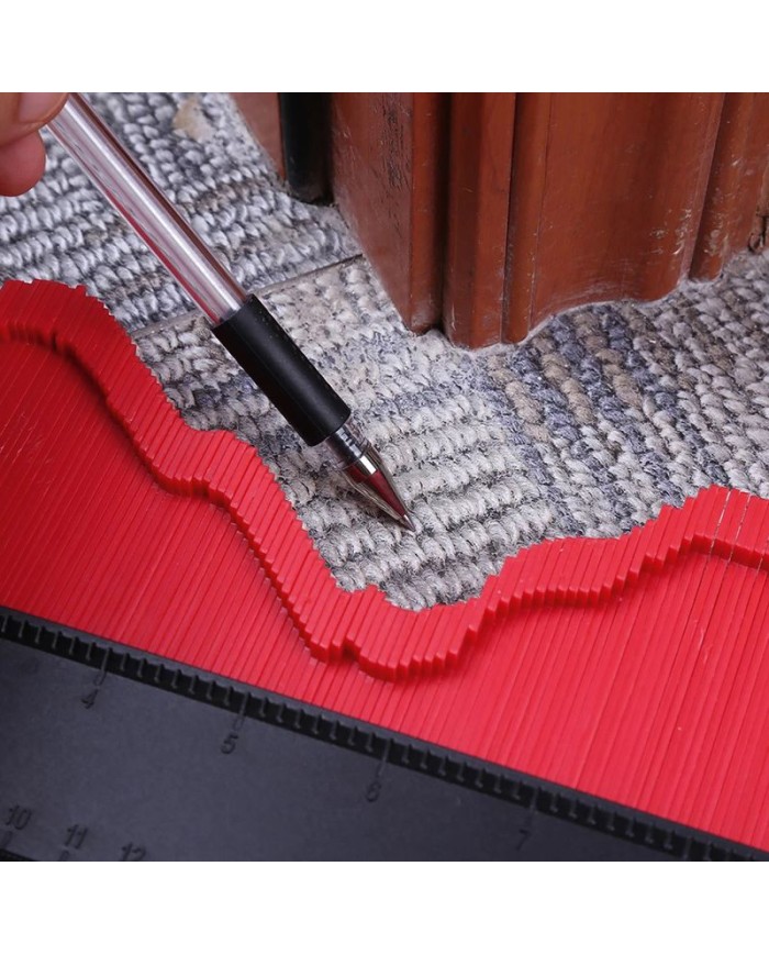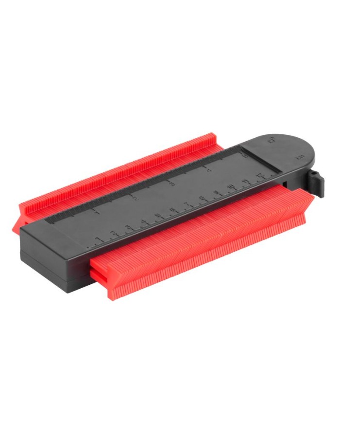 Táto šablóna s uzamykacím mechanizmom a magnetmi Vám umožní jednoduché prenesenie tvaru profilu predmetu na opracovávaný predmet. Priložením šablóny k predmetu sa lamely prispôsobia jeho tvaru a okopírovaný tvar je možné preniesť na opracovávaný predmet. Šablóna má na spodnej časti magnety pre lepšie uchytenie na kovových predmetoch a funkciu uzamknutia obkresleného tvaru, ktorá znemožní náhodnému posunutiu lamiel. Výborná pomôcka pre obkladačov, podlahárov a veľa iných profesií.