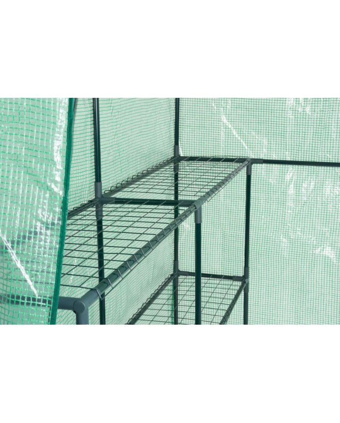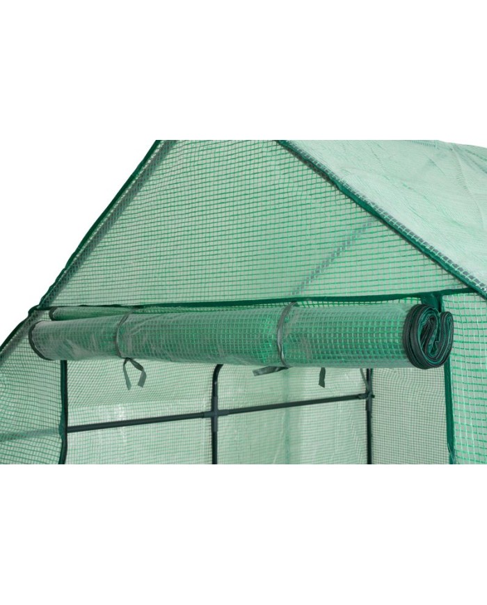 Veľké priestranné parenisko je možné použiť na záhrade. Jednoduchá montáž. Základný rám vám umožňuje parenisko ľahko premiestniť. Kryt je vyrobený z vystuženého polyetylénu odolného voči UV žiareniu s hustotou 140 g / m. Udržuje rastliny organizované a prehľadné pomocou 4 políc na oboch stenách. Rastliny sú ľahko prístupné cez centrálny otvor, ktorý viete jednoducho zrolovať a uzavrieť.Materiál:PE Práškovaný kov, Plastová PE folia - økovového rámu:16 mm -Rozmery:142 x 142 x 193 cm.