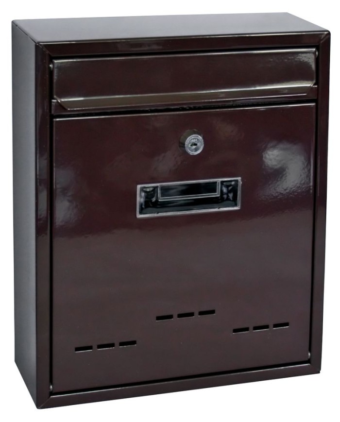 Elegantná poštová schránka v hnedej farbe. Obsahuje časť na letáky.