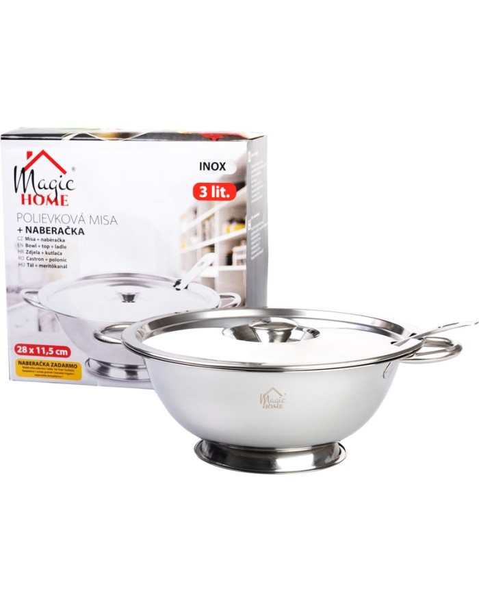 Polievková misa s naberačkou MagicHome je určená na bežné používanie. Objem : 3,9 l. Vyrobená z nerezu.