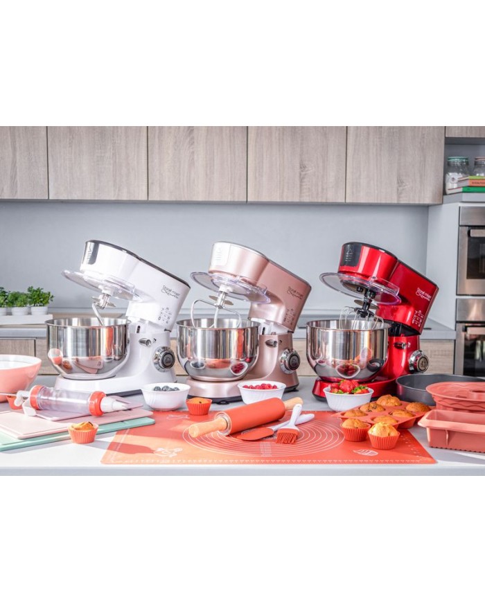 Luxusný kuchynský robot s tichým vysokovýkonným motorom. Robot je vybavený 3 rôznymi nadstavcami, ktoré sú ovládané planetárnym systémom miešania. Spolu so 6 stupňovým nastavením rýchlosti bude hnetenie, šľahanie a miešanie podstatne rýchlejšie a pohodlnejšie. Vo veľkokapacitnej nerezovej miešacej nádobe spracujete aj väčšiu masu cesta. K robotu je možné dokúpiť aj mlynček na mäso a nádobu na mixovanie, čo z neho robí multifunkčné zariadenie.
