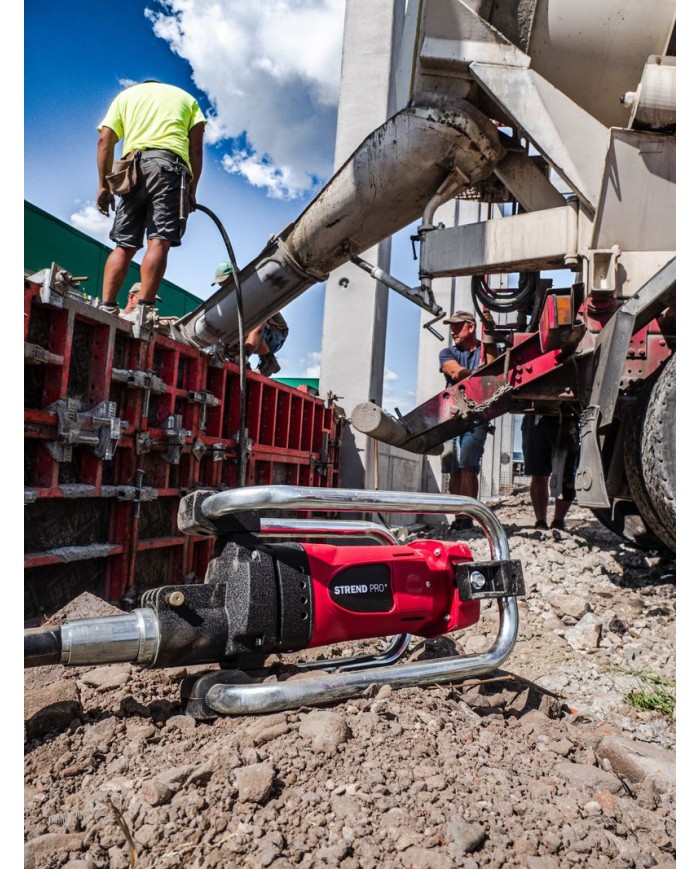 Elektrický ponorný vibrátor Strend Pro zbavuje betón vzduchových bublín, čím dochádza k jeho zhutneniu. Dôkladné zhutnenie výrazne zlepšuje nosnosť, stabilitu, obmedzuje priepustnosť vody a zabraňuje vzniku prasklín. Vďaka tomu je ideálnym pomocníkom pri všetkých betonárskych prácach.