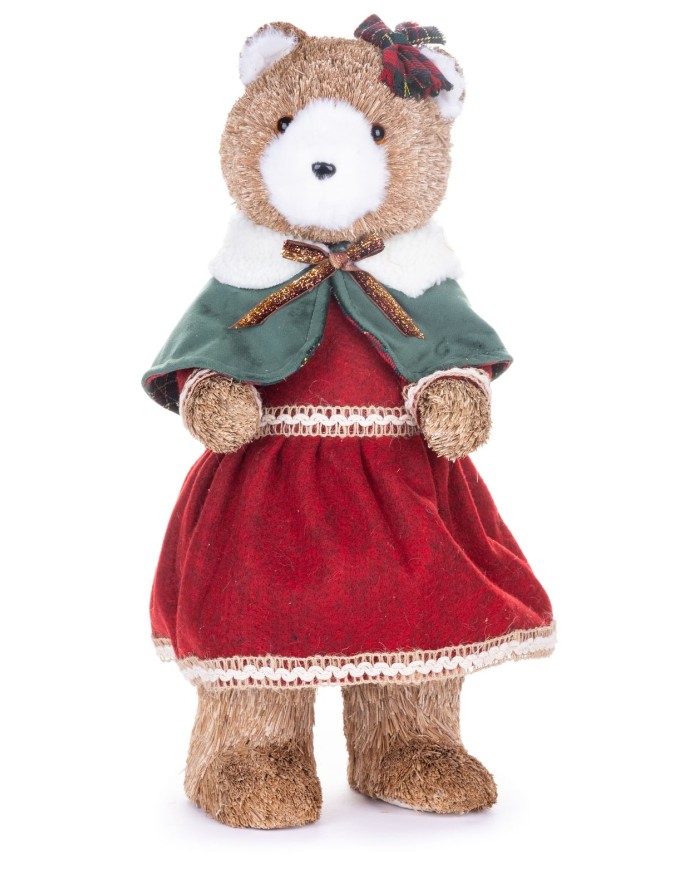 Dekorácia MagicHome Vianoce, Medvedica v červených šatičkách, 18x22x41 cm