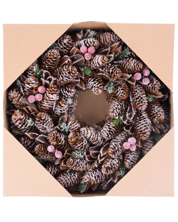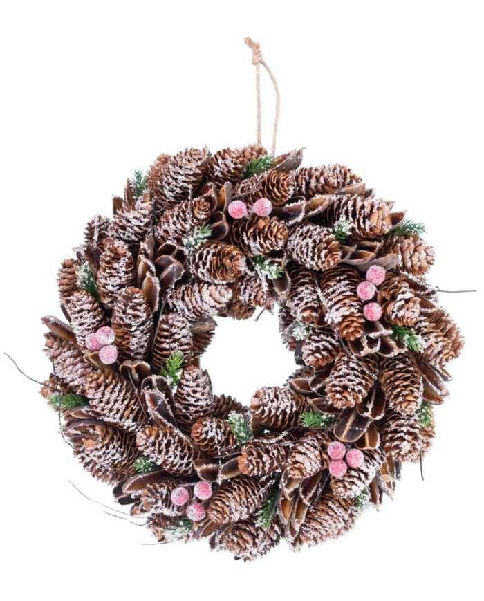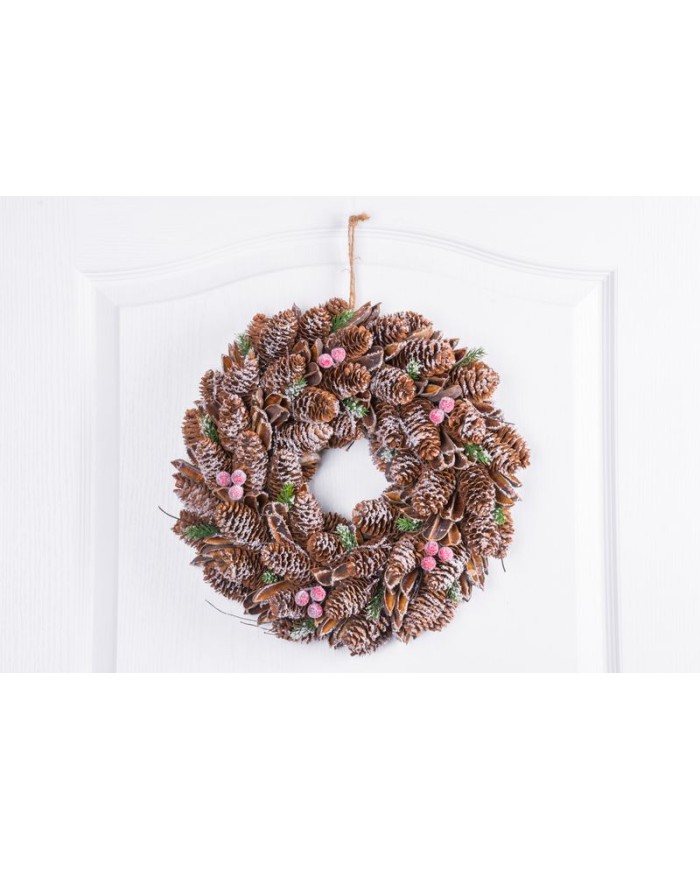 Veniec MagicHome Vianoce, zasnežený, šišky, 37x09x37 cm