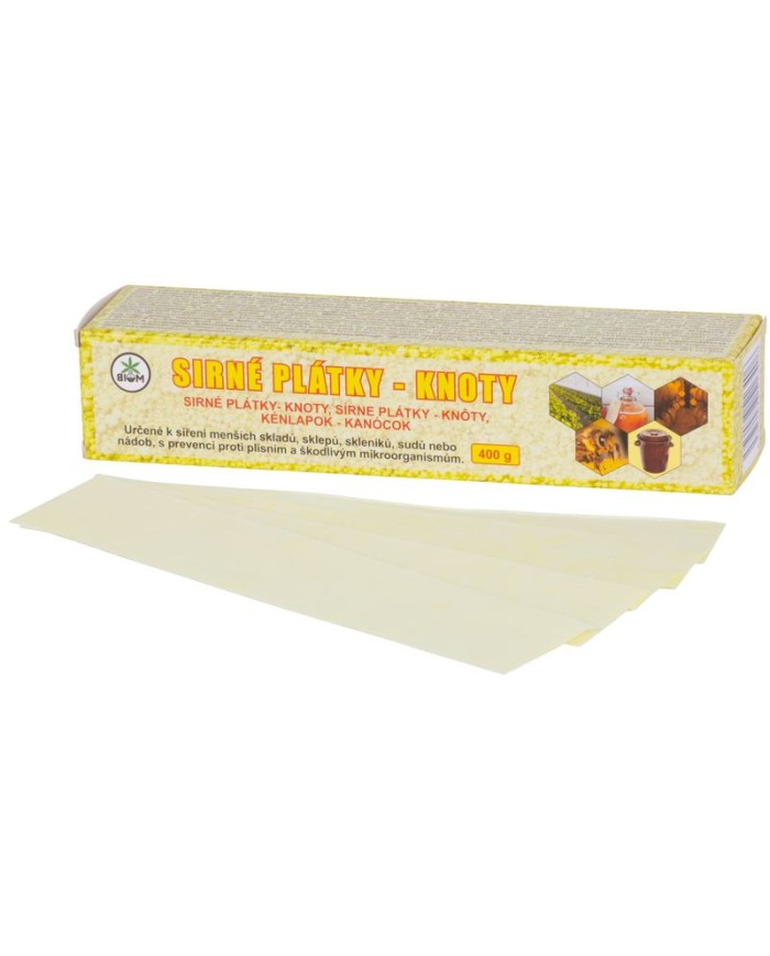 Prípravok určený na sírenie včelích plastov, skladovacích nádob (sudy na kapustu, demižóny a iné sudy), menších pivníc, skladov a iných uzavretých, prázdnych miestností pred opätovným naskladnením tovarom. Sírny plátok je vyrobený zo špeciálneho papiera s mikrosklenenými vláknami novej generácie, potiahnutý tenkou vrstvou síry. Pri horení síra z plátku neodkvapkáva. Odporúčané aplikovanie: jeden sírny plátok vystačí na 50 l uzavretého priestoru (nádoby).